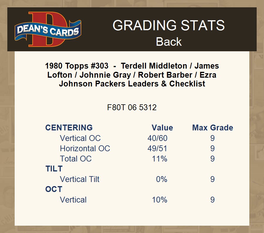 1980 Topps #303 - Terdell Middleton / James Lofton / Johnnie Gray / Robert Barber / Ezra Johnson Packers Leaders & Checklist 1.5 - FAIR