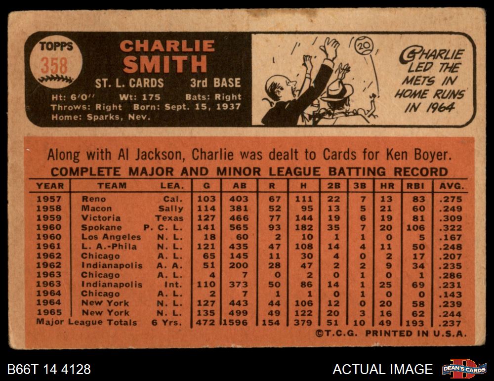 1966 Topps #358 Charlie Smith Front Thumbnail