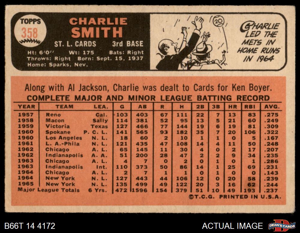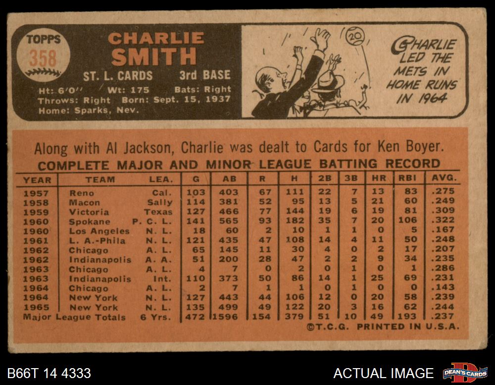 1966 Topps #358 Charlie Smith 2 - GOOD