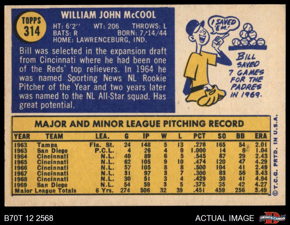 1970 Topps #314 Bill McCool 8 - NM/MT