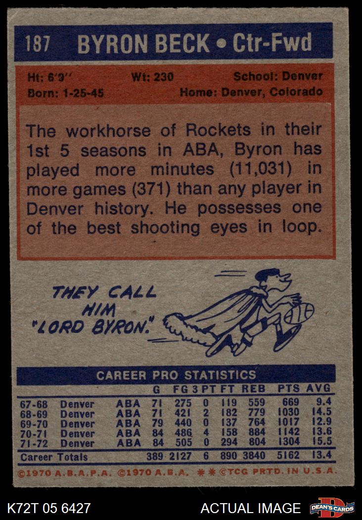 1972 Topps #187 Byron Beck 4 - VG/EX
