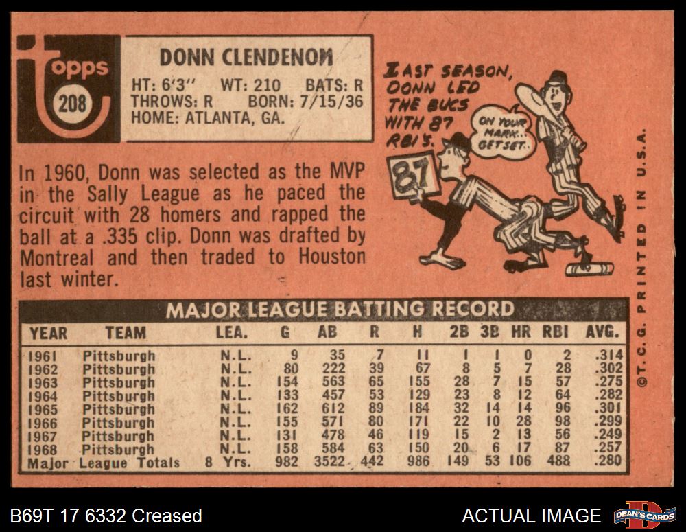 1969 Topps #208 HOU Donn Clendenon 3 - VG