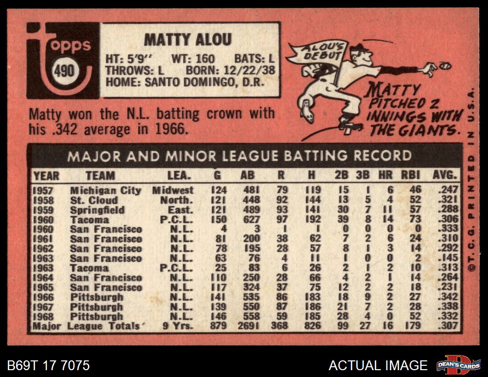 1969 Topps #490 Matty Alou 6 - EX/MT