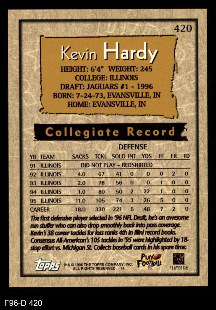 1996 Topps #420 Kevin Hardy