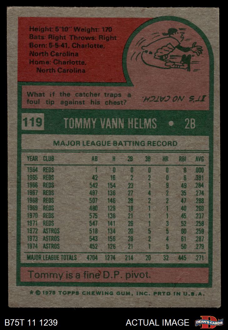 1975 Topps #119 Tommy Helms 4 - VG/EX