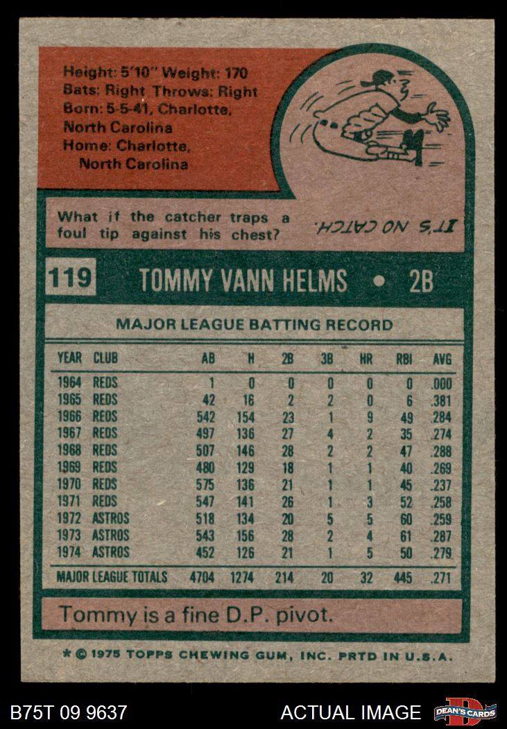 1975 Topps #119 Tommy Helms 7 - NM