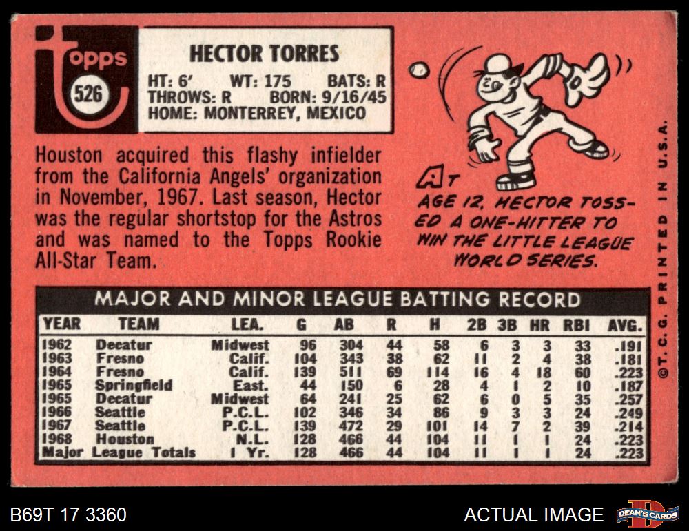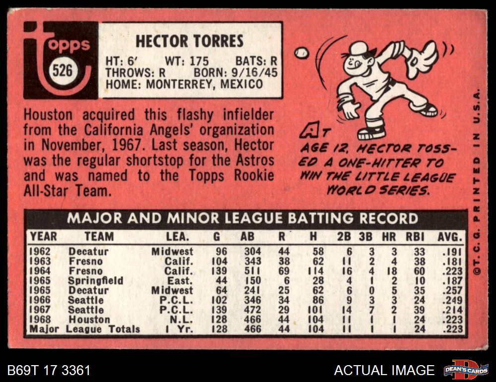 1969 Topps #526 Hector Torres 3 - VG