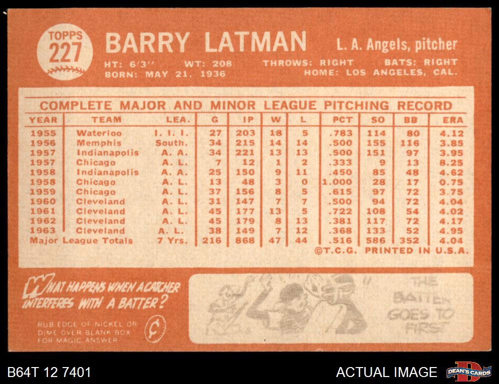 1964 Topps #227 Barry Latman 4 - VG/EX
