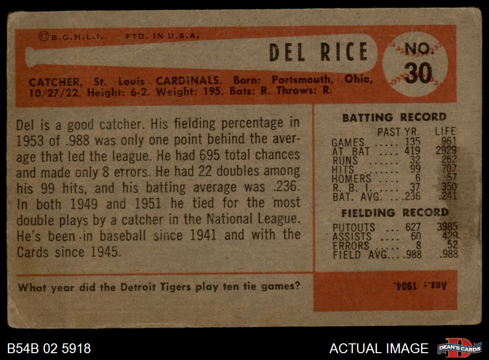 1954 Bowman #30 Del Rice 1.5 - FAIR