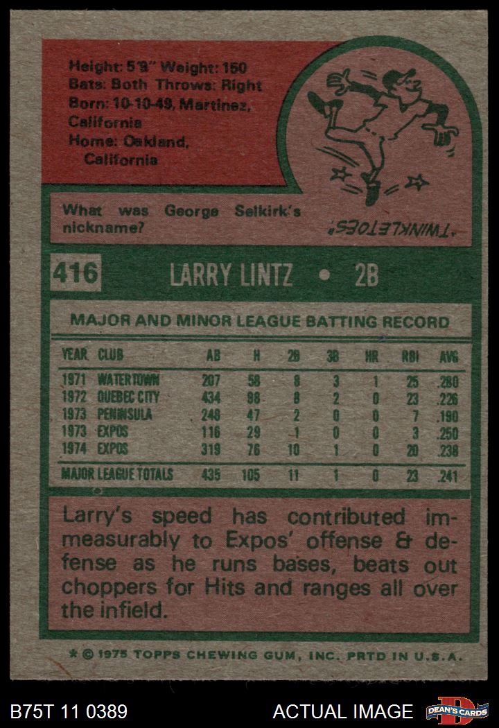 1975 Topps #416 Larry Lintz