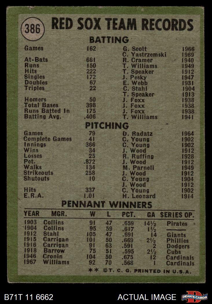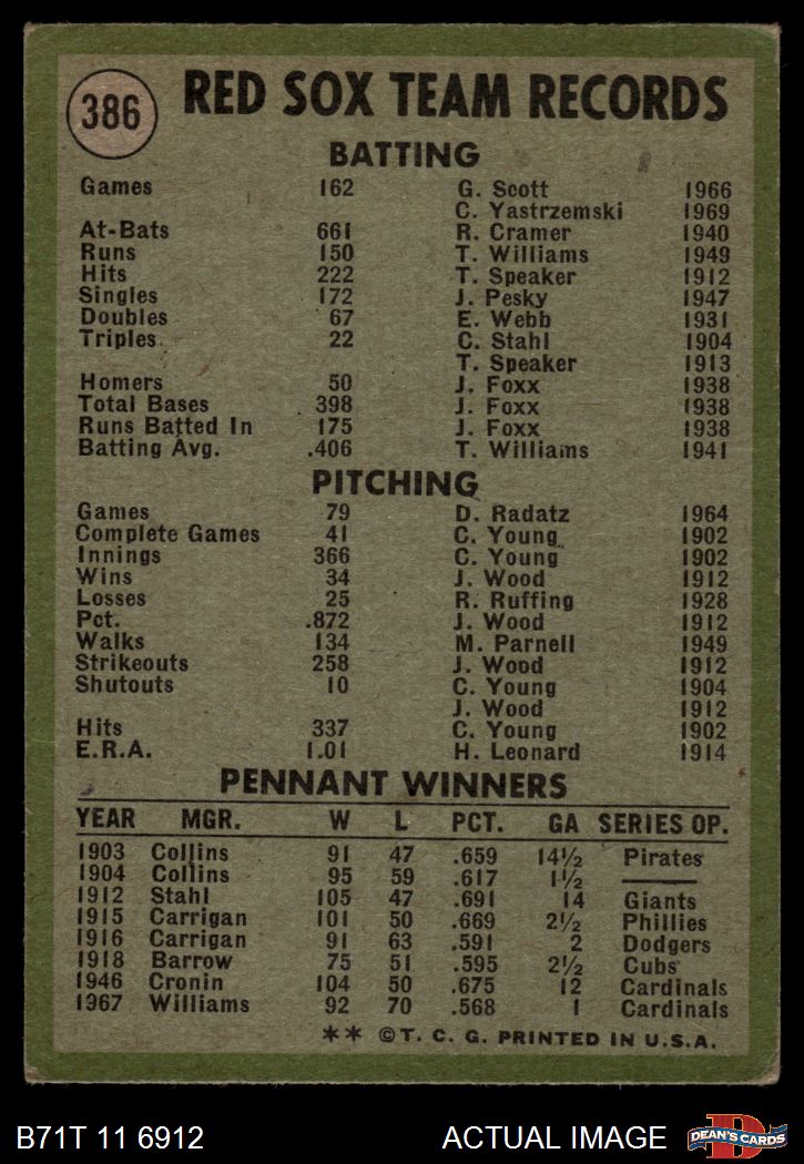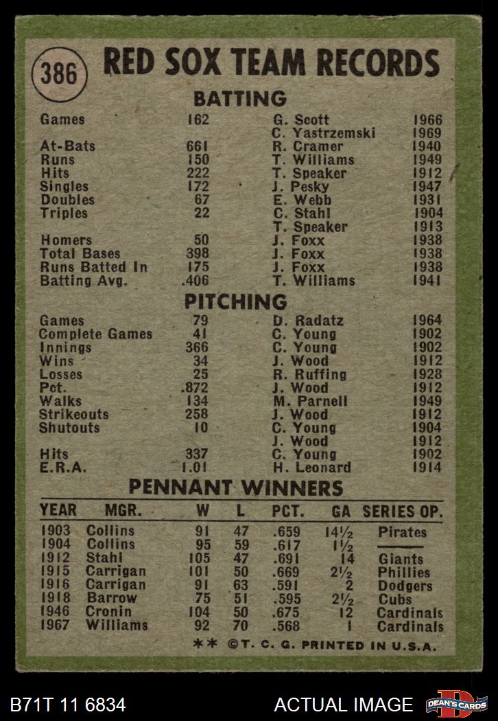 1971 Topps #386 Red Sox Team 3 - VG