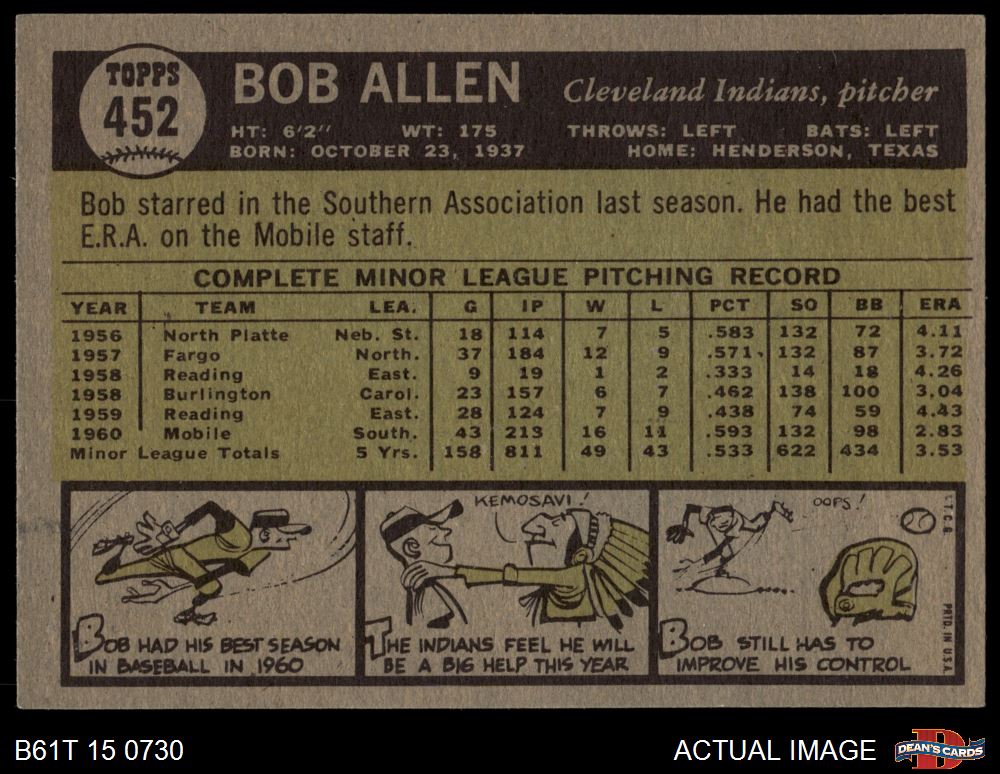 1961 Topps #452 Bob Allen 4 - VG/EX