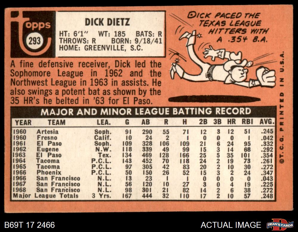 1969 Topps #293 Dick Dietz 3 - VG