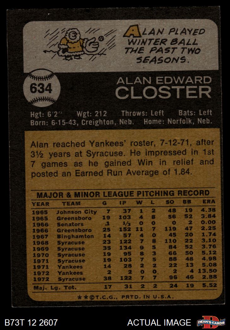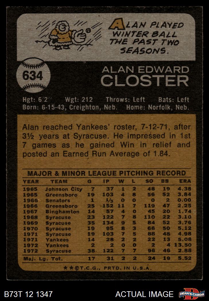 1973 Topps #634 Alan Closter 5 - EX