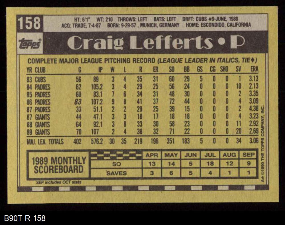 1990 Topps #158 Craig Lefferts 8 - NM/MT