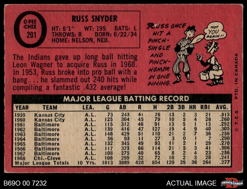 1969 O-Pee-Chee #201 Russ Snyder 4 - VG/EX