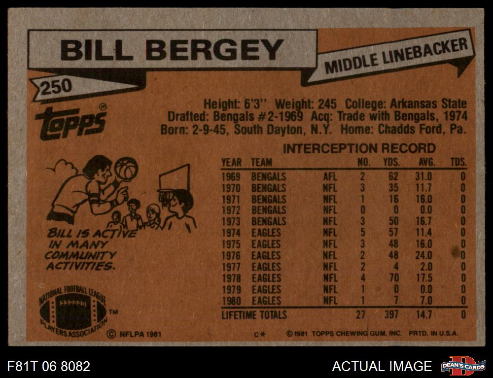 1981 Topps #250 Bill Bergey 6.5 - EX/MT+