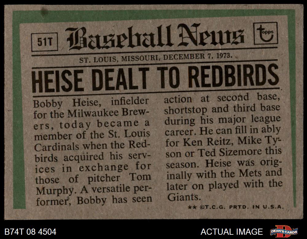 1974 Topps Baseball Cards (15,918 available)1974 Topps Traded Cardinals (175 available)