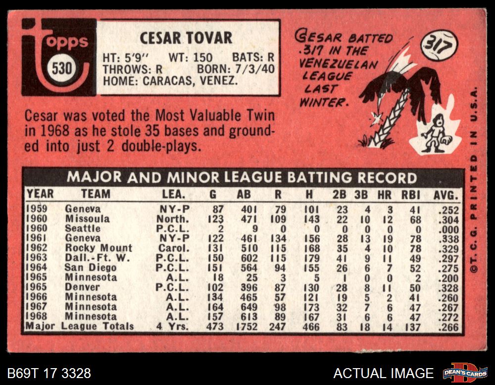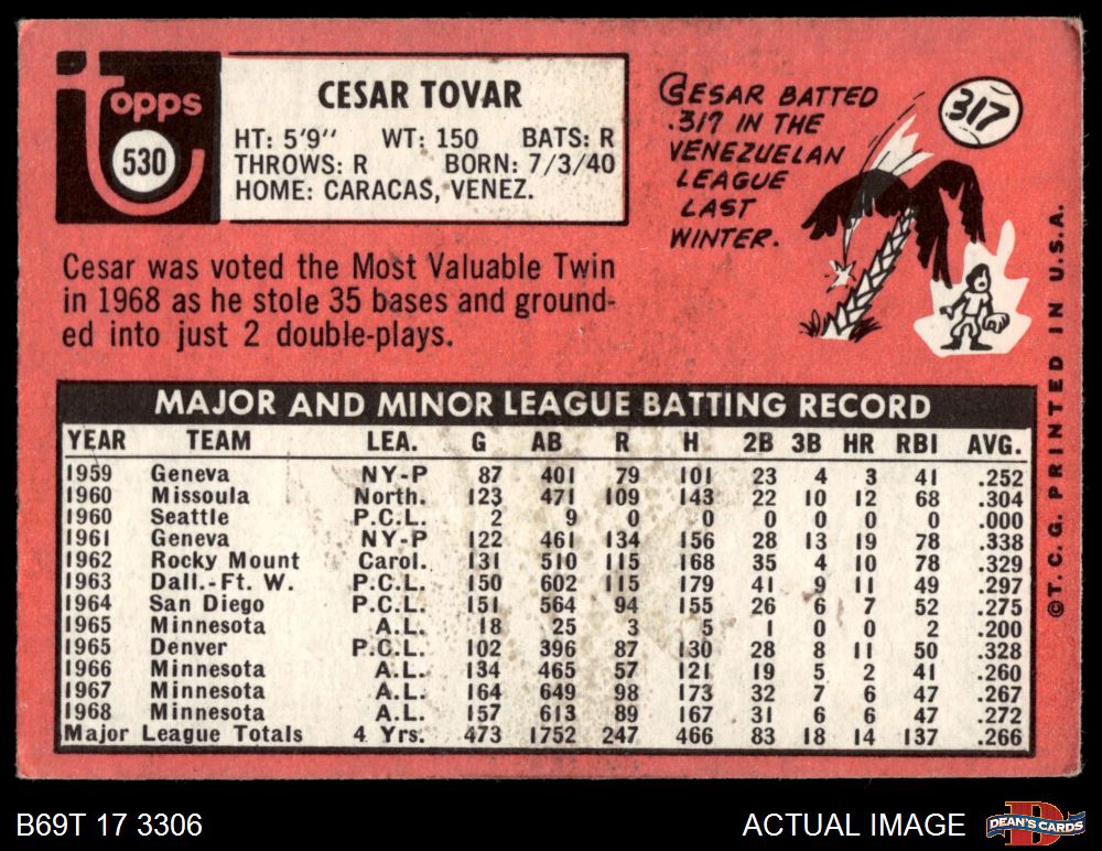 1969 Topps #530 Cesar Tovar 2 - GOOD