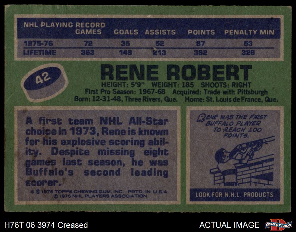 1976 Topps #42 Rene Robert 2.5 - GD+