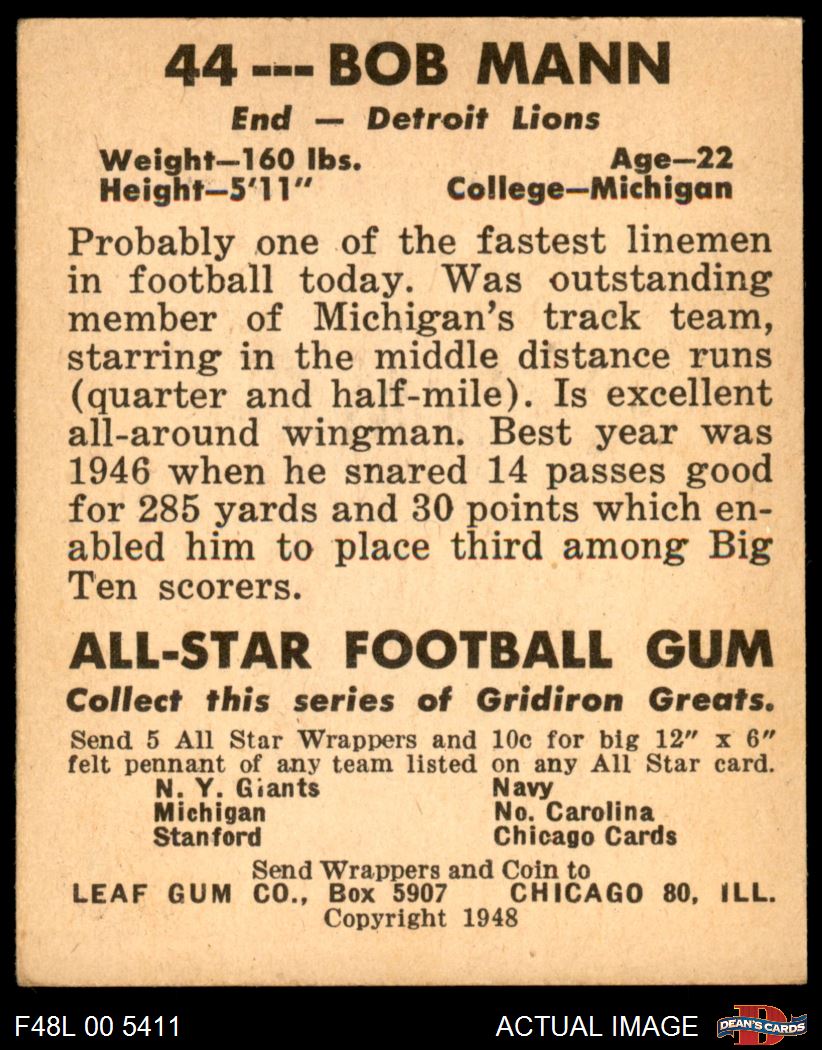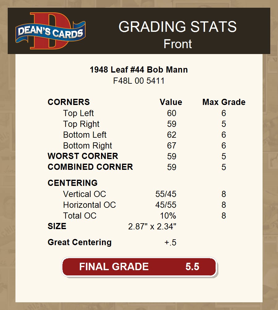 1948 Leaf #44 Bob Mann 5.5 - EX+