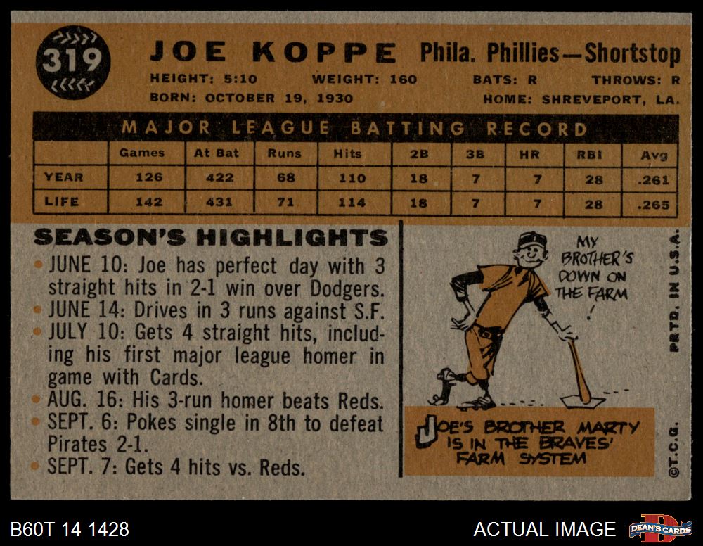 1960 Topps #319 Joe Koppe 5 - EX