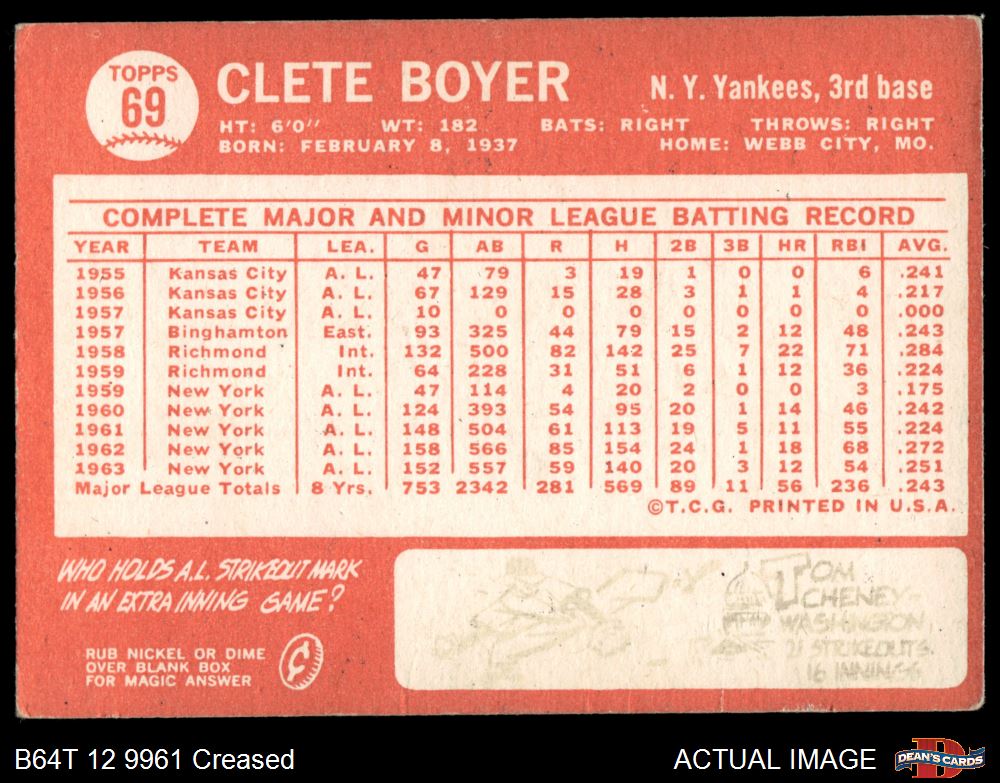 1964 Topps #69 Clete Boyer