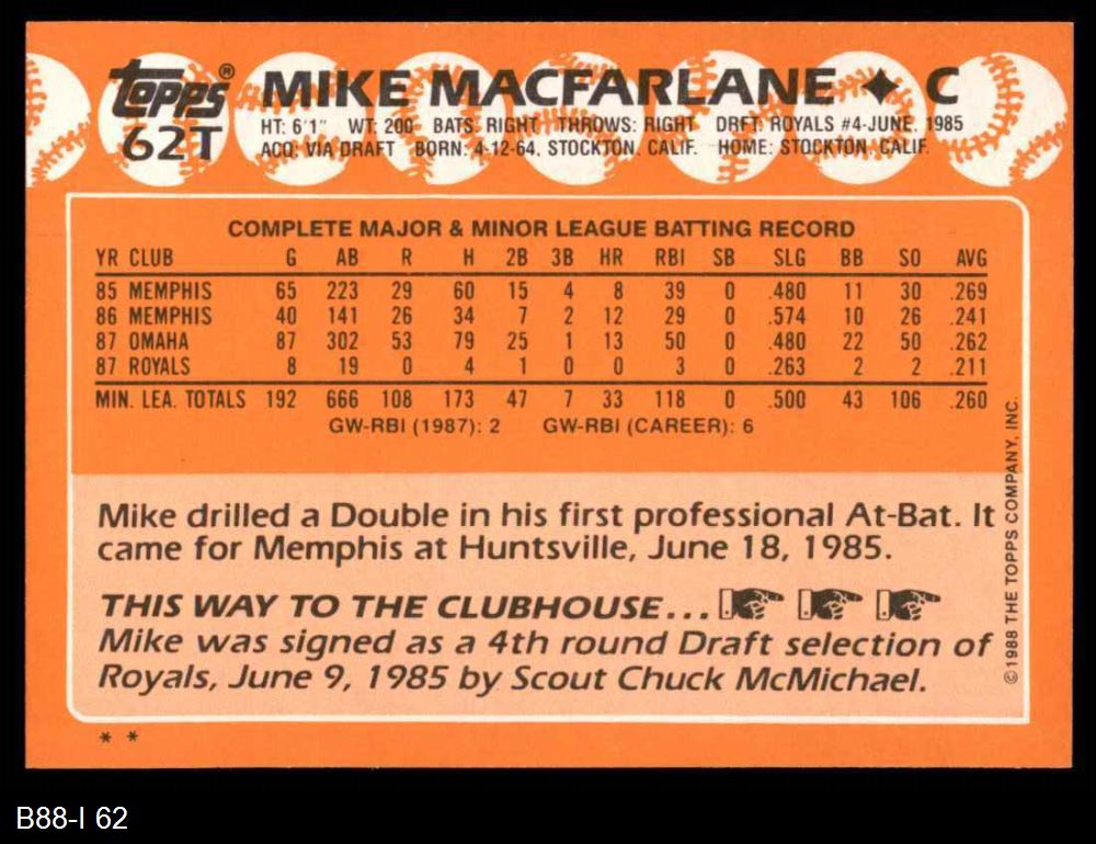 1988 Topps Traded #62 T Mike Macfarlane 8 - NM/MT