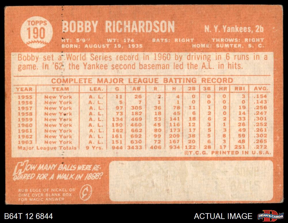 1964 Topps #190 Bobby Richardson 2 - GOOD