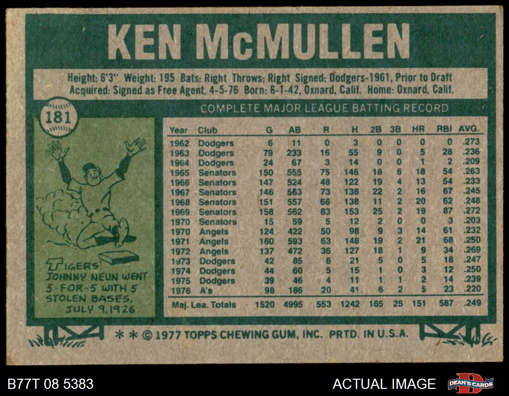 1977 Topps #181 Ken McMullen