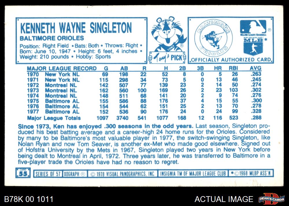 1978 Kellogg's #55 Ken Singleton