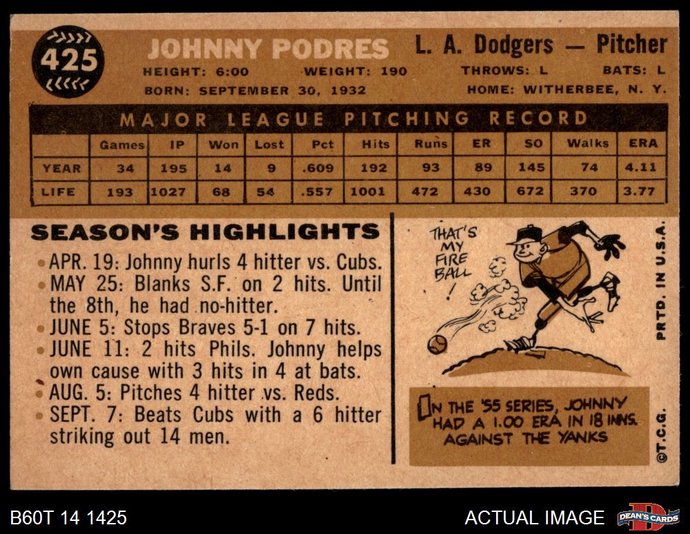 1960 Topps #425 Johnny Podres 5.5 - EX+