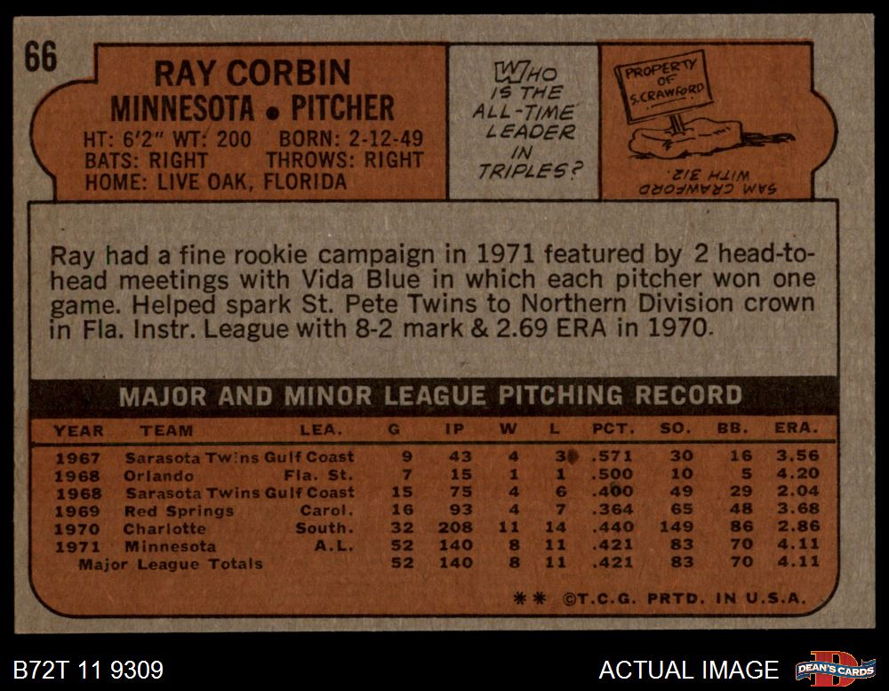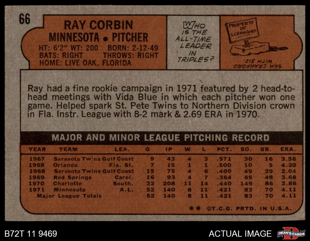 1972 Topps #66 Ray Corbin 4 - VG/EX