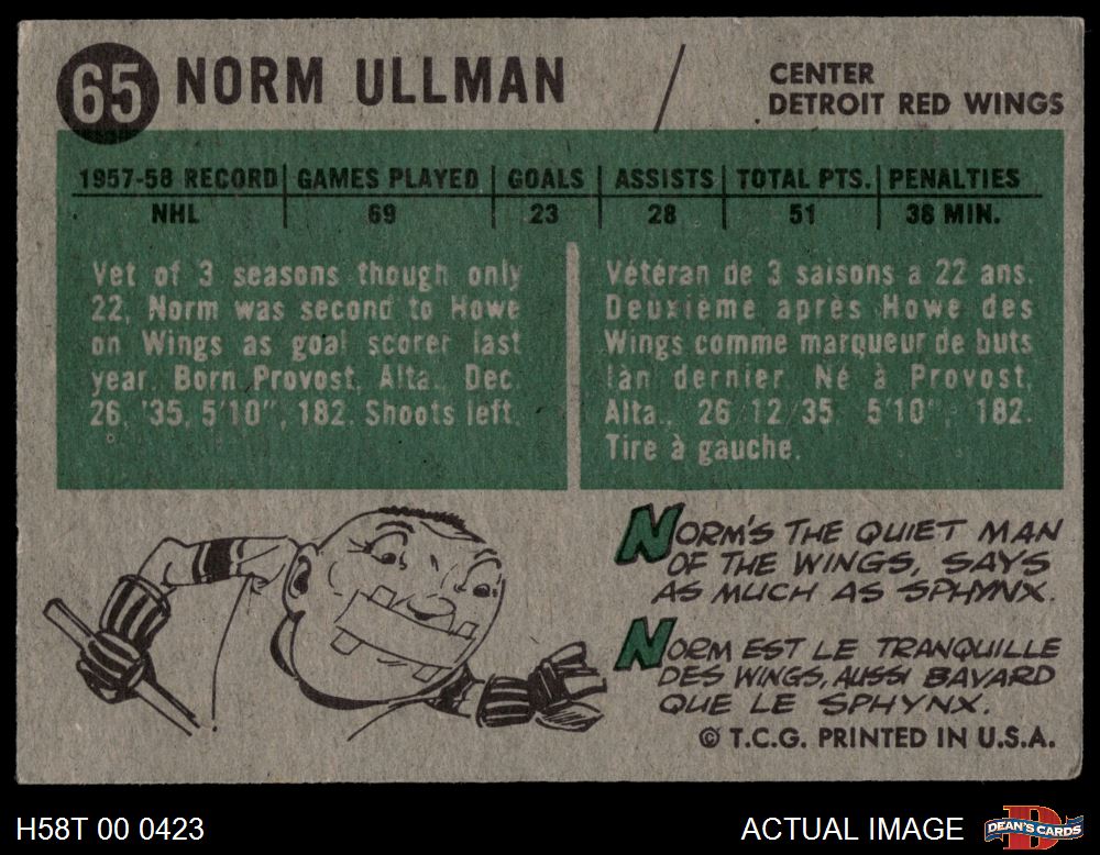 1958 Topps #65 Norm Ullman 2 - GOOD