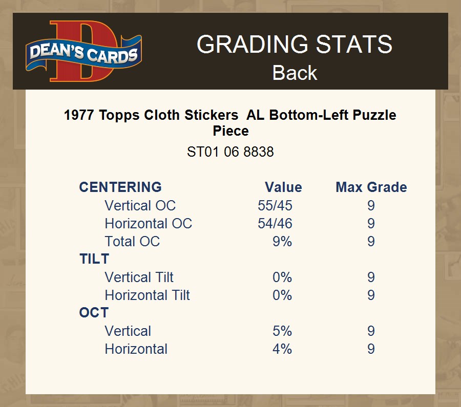 1977 Topps Cloth Stickers AL Bottom-Left Puzzle Piece