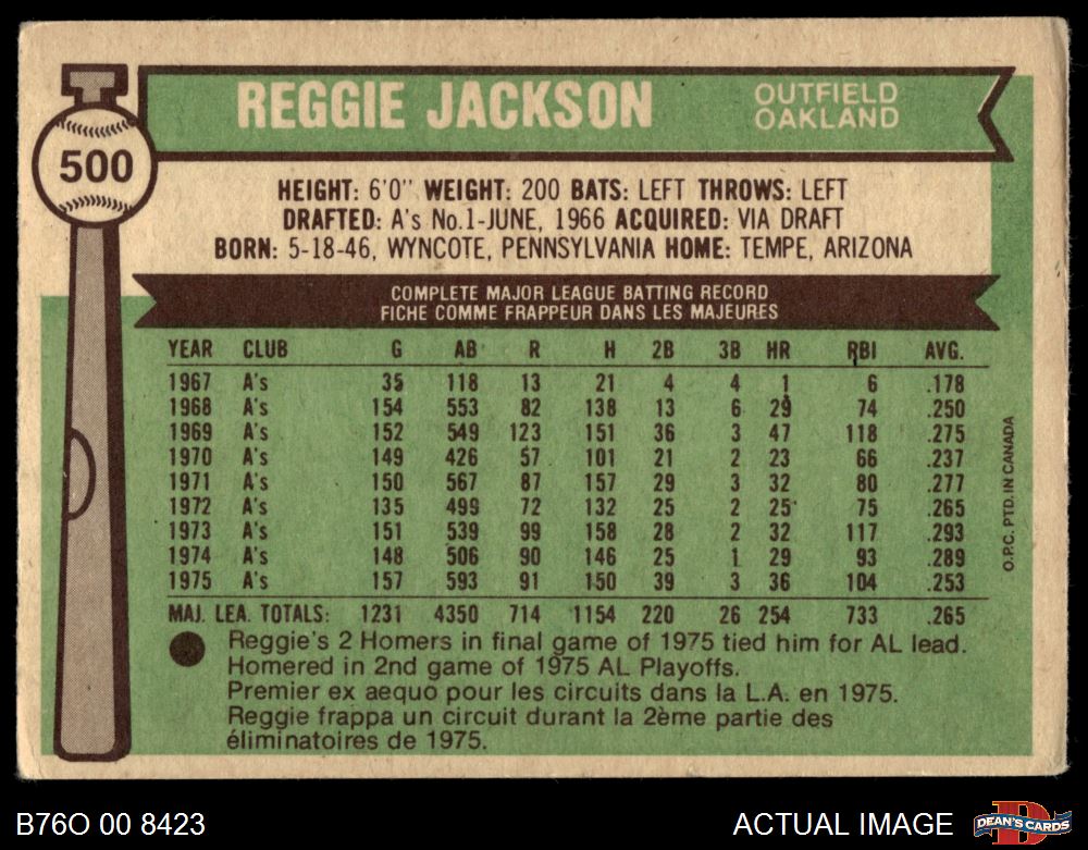 1976 O-Pee-Chee #500 Reggie Jackson 2 - GOOD