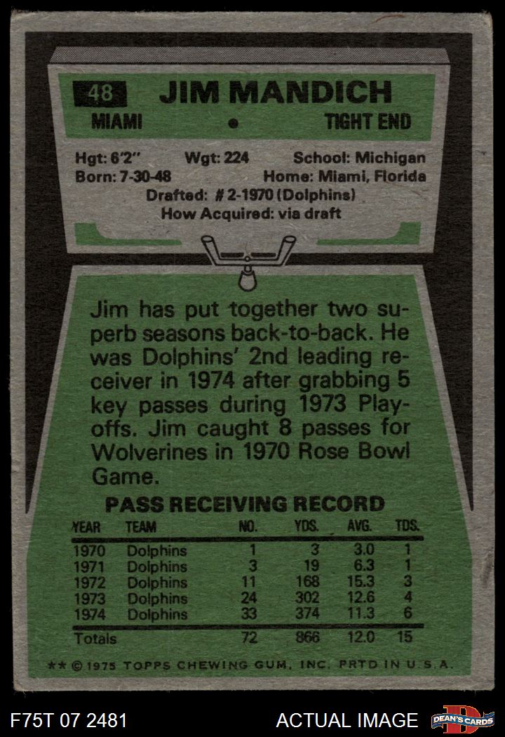 1975 Topps #48 Jim Mandich 1.5 - FAIR