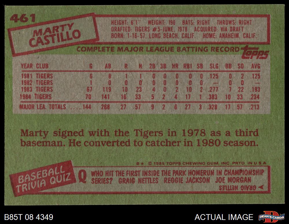 1985 Topps #461 Marty Castillo