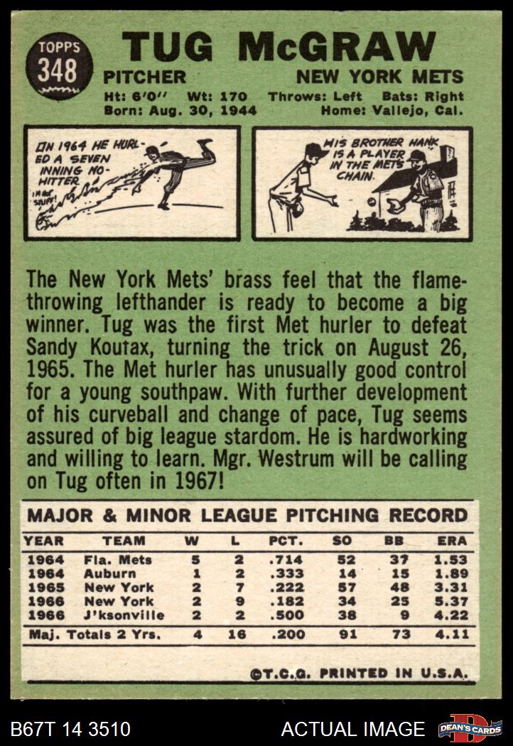 1967 Topps #348 Tug McGraw 7 - NM