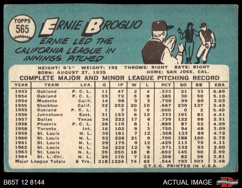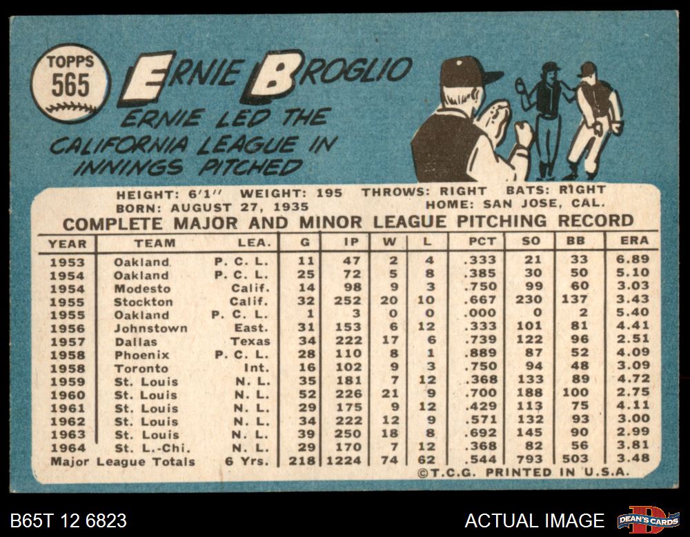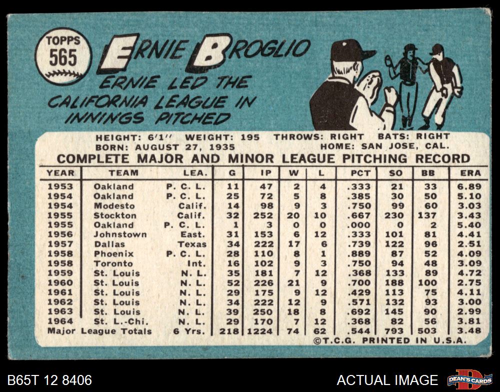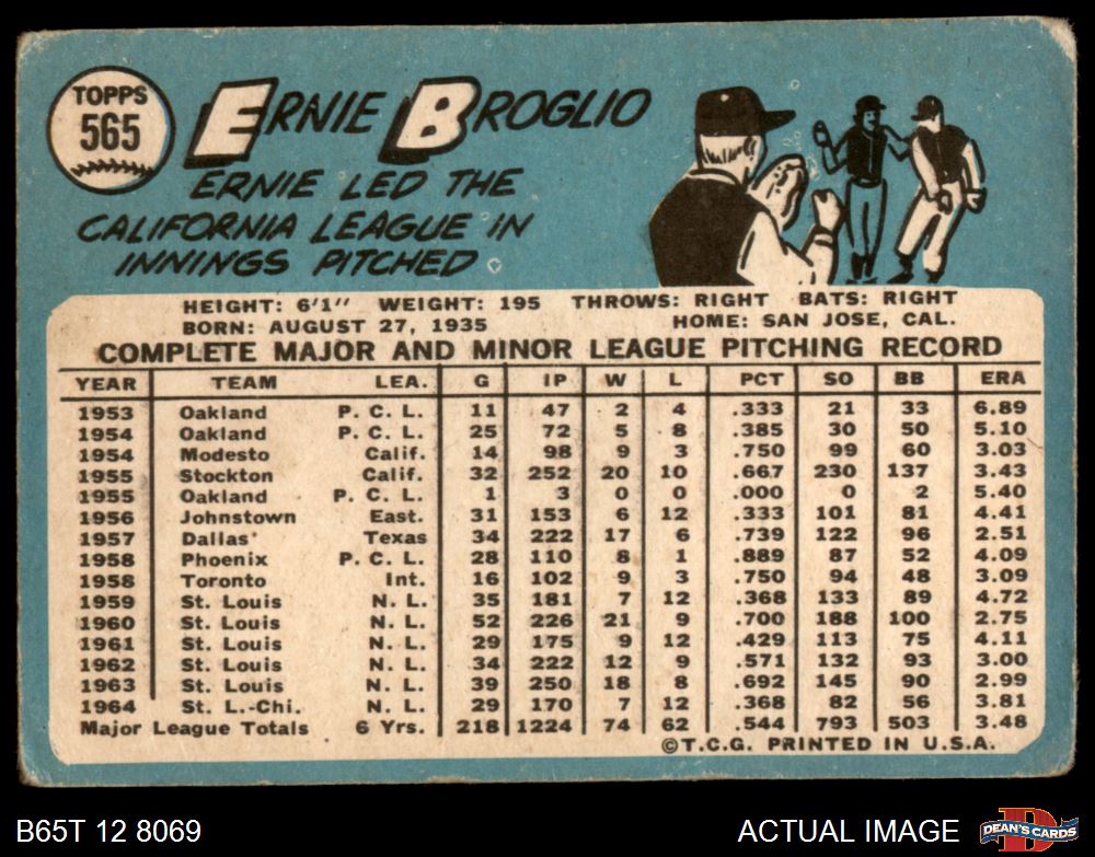 1965 Topps #565 Ernie Broglio
