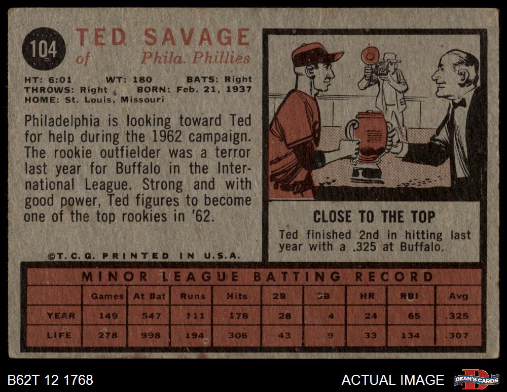 1962 Topps #104 Ted Savage 4 - VG/EX