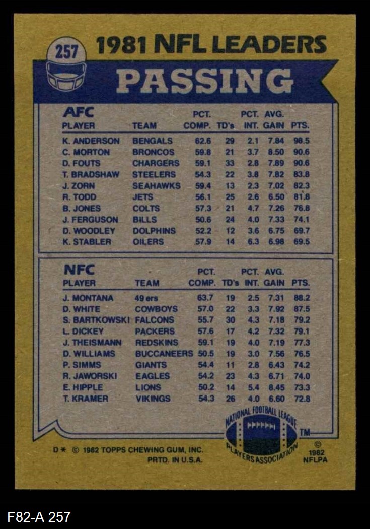 1982 Topps Football Cards (2,985 available)1982 Topps Bengals / 49ers (43 available)