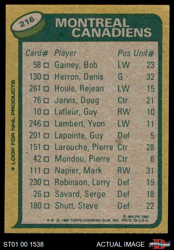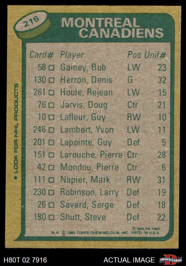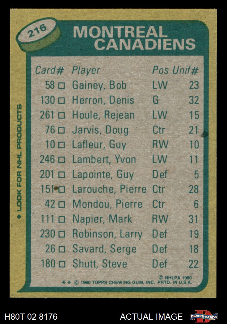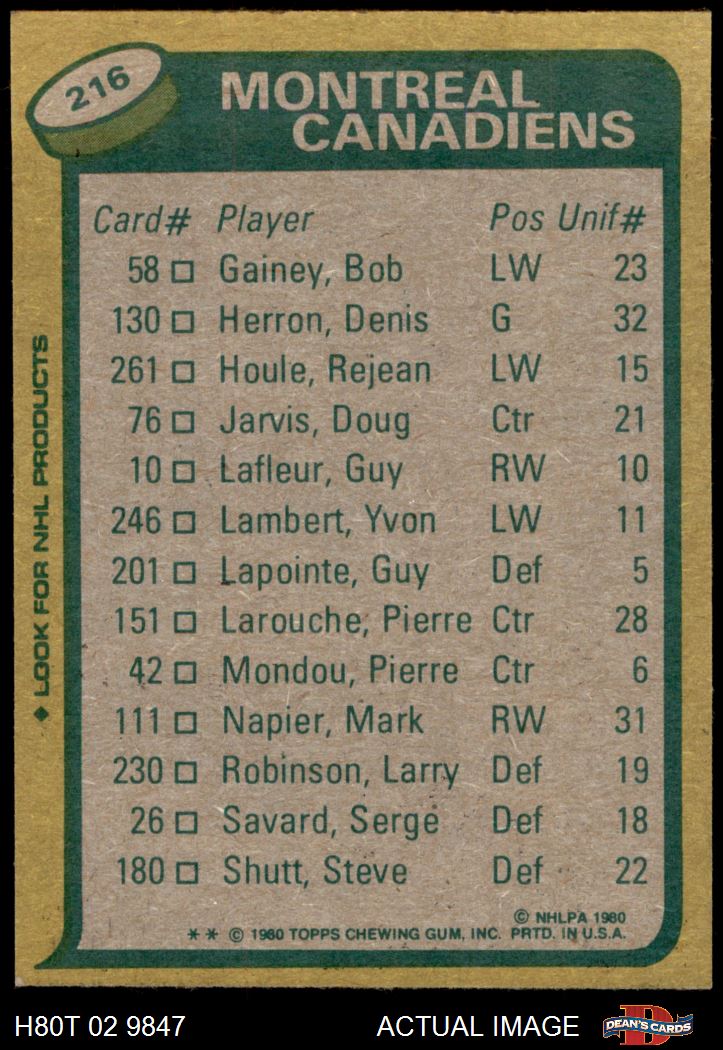 1980-81 Topps Hockey Cards (1,621 available)1980 Topps Canadiens (128 available)