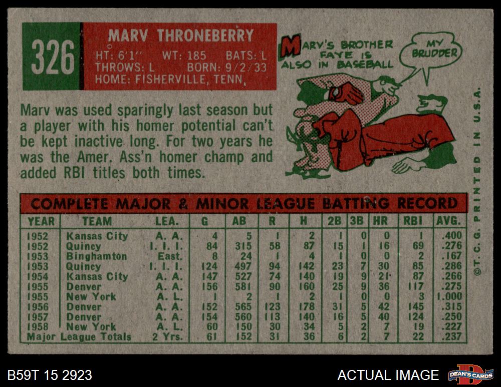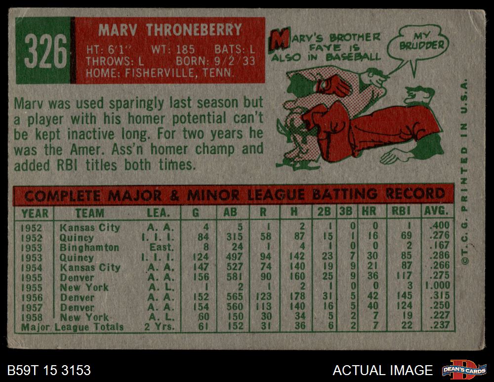 1959 Topps #326 Marv Throneberry