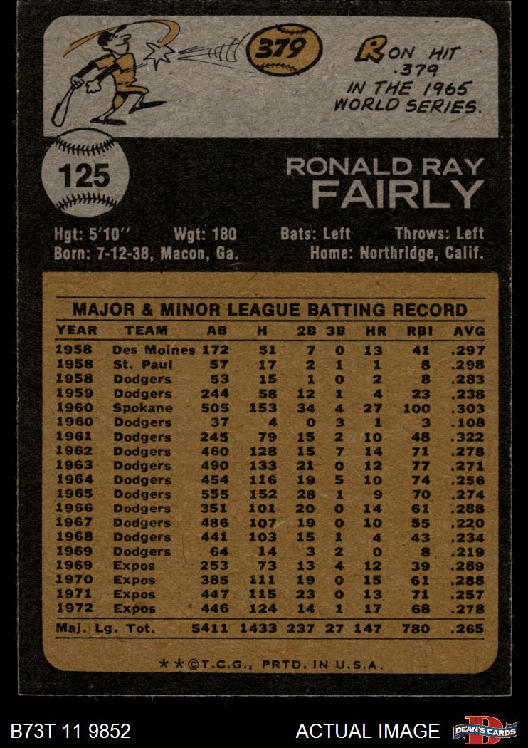 1973 Topps #125 Ron Fairly 6.5 - EX/MT+
