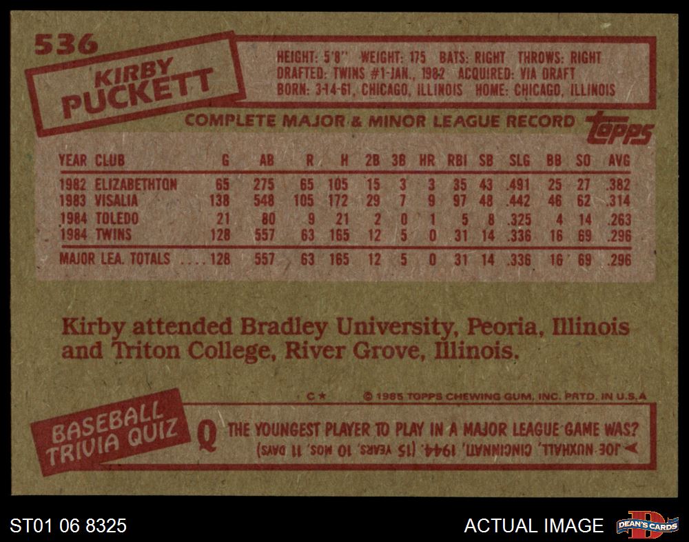 1985 Topps #536 Kirby Puckett 8 - NM/MT