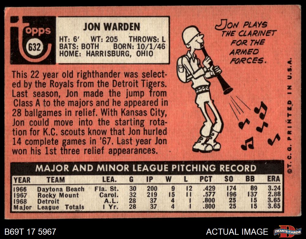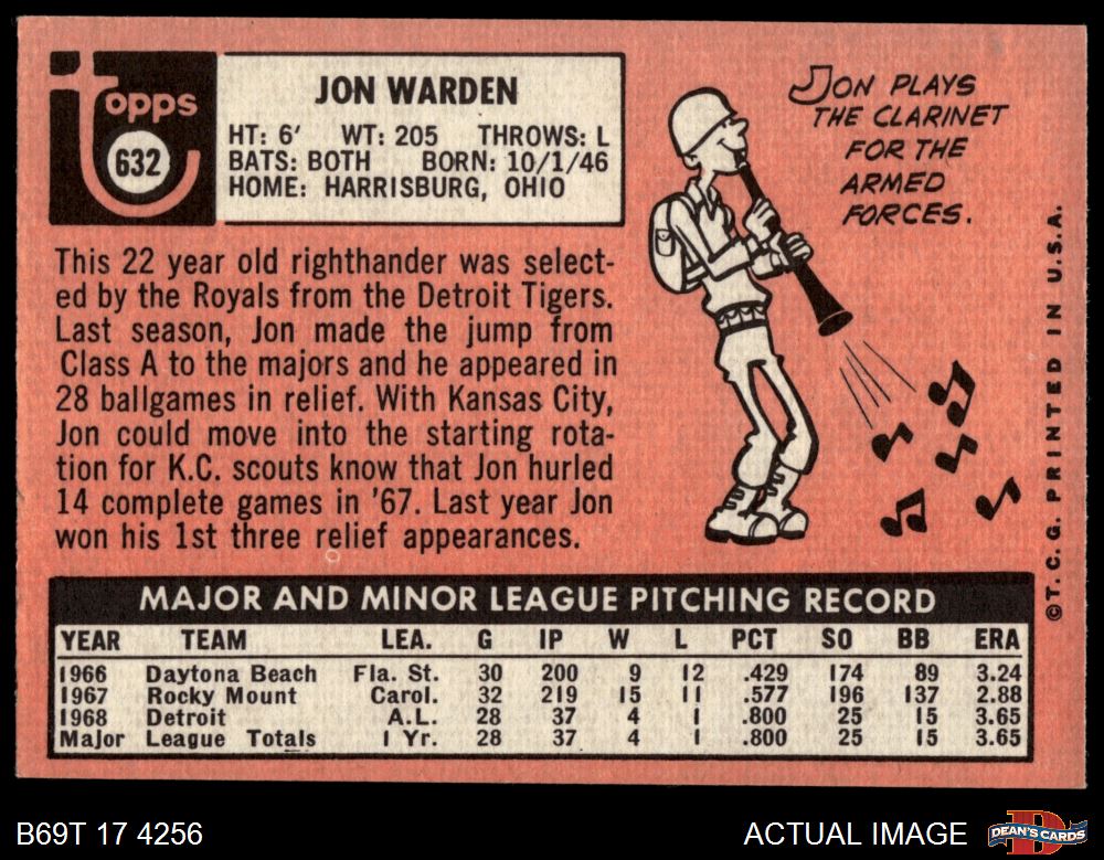 1969 Topps #632 Jon Warden 4 - VG/EX