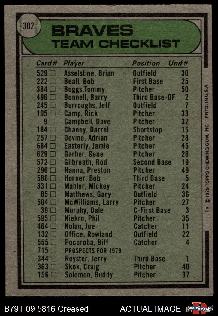 1979 Topps #302  -  Bobby Cox Braves Team Checklist Front Thumbnail