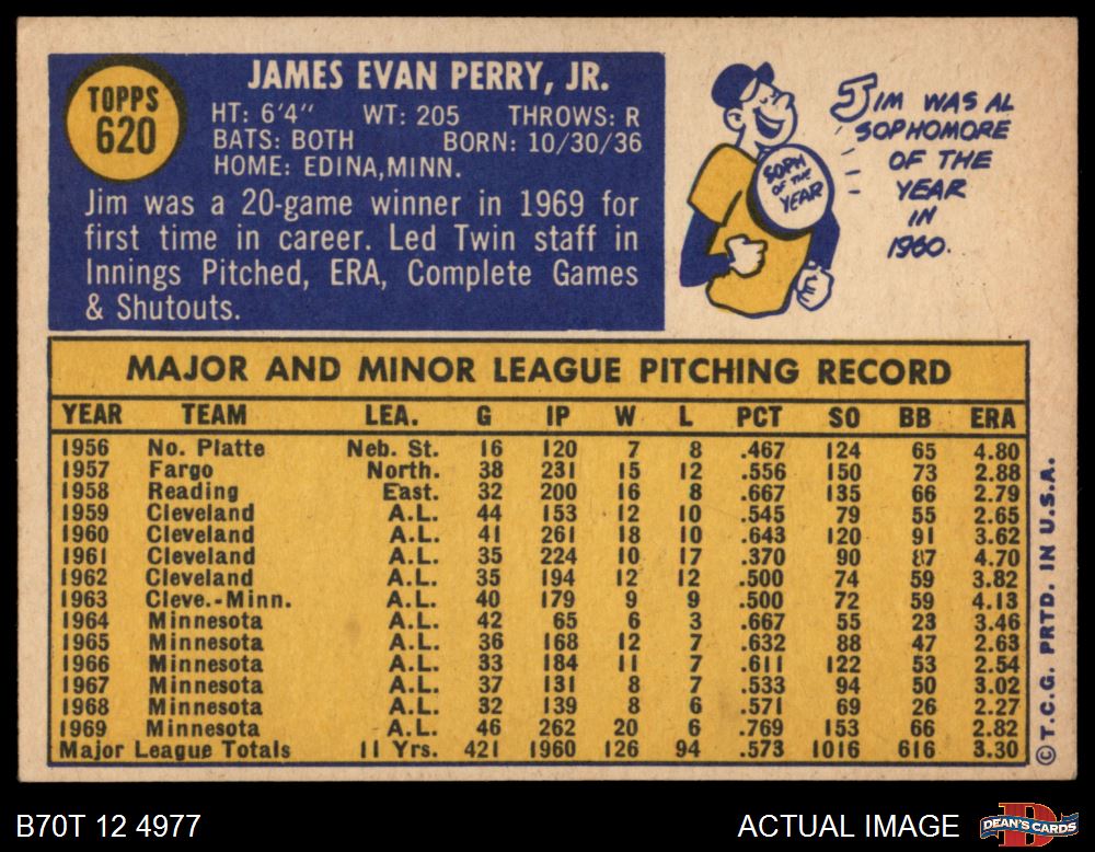 1970 Topps #620 Jim Perry 4 - VG/EX