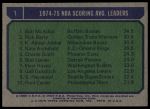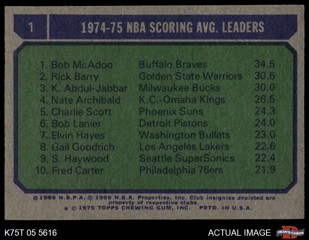 1975 Topps #1 - Kareem Abdul-Jabbar / Rick Barry / Bob McAdoo NBA Scoring Average Leaders 4 - VG/EX
